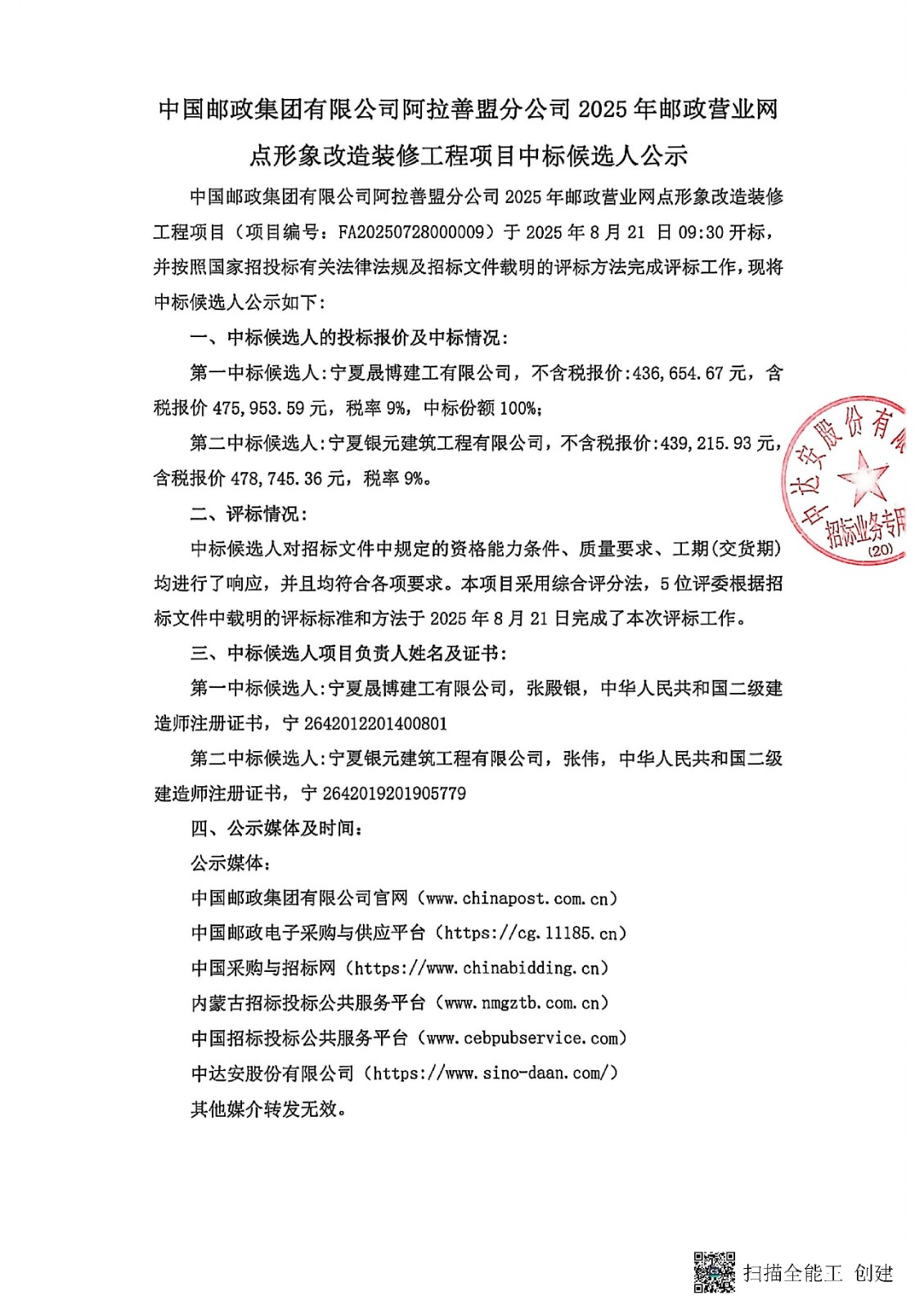 中國(guó)郵政集團(tuán)有限公司阿拉善盟分公司2025年郵政營(yíng)業(yè)網(wǎng)點(diǎn)形象改造裝修工程項(xiàng)目中標(biāo)候選人公示.pdf