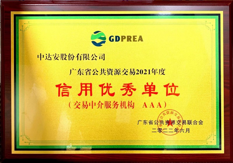 廣東省公共資源交易信用優(yōu)秀單位(2021年度AAA級(jí))-交易中介服務(wù)機(jī)構(gòu)
