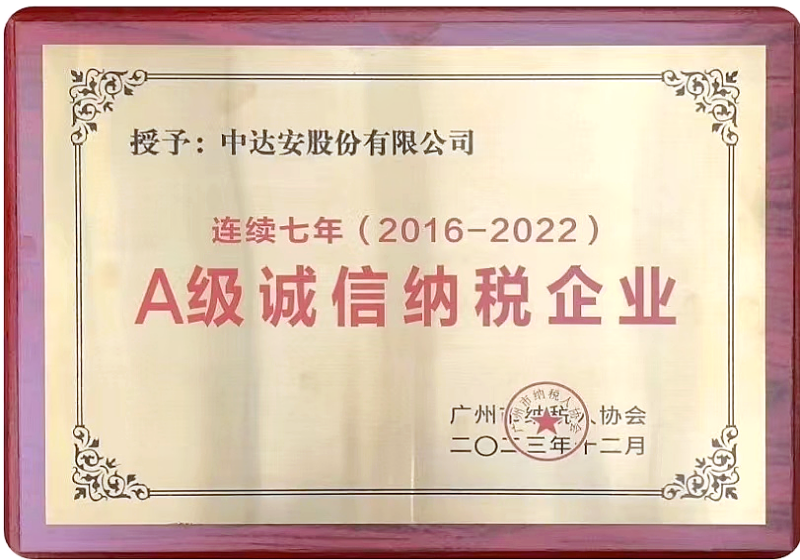 連續(xù)七年(2016-2022)A級(jí)誠(chéng)信納稅企業(yè)
