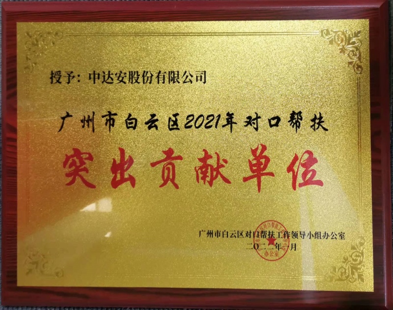 廣州市白云區(qū)2021年對口幫扶突出貢獻單位